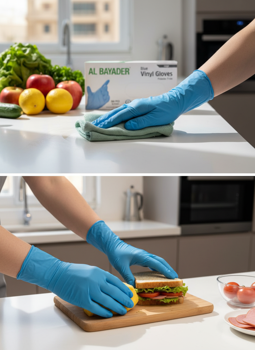 Al Bayader Blue Vinyl Gloves - Size Large (100 PCS) | Powder Free
