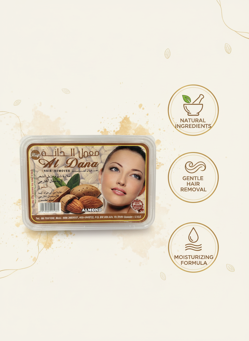 Al Dana Hair Remover Wax with Almond combines effective hair removal with the moisturizing power of sweet almond. This 100% natural formula is enriched with almond oil to nourish and protect your skin while removing unwanted hair—leaving you smooth, soft, and beautifully cared for!