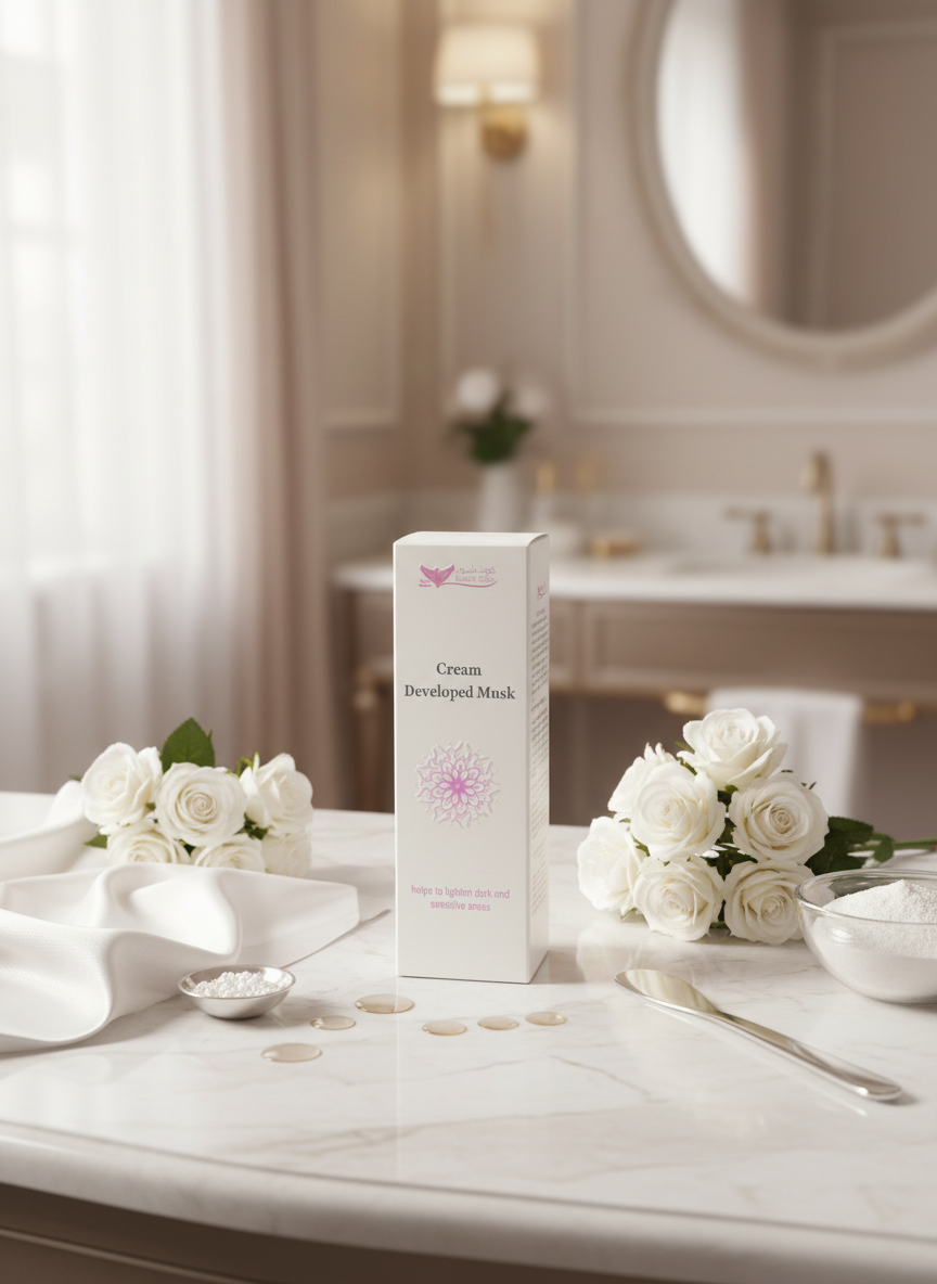 Cream Developed Musk is specially formulated to help lighten dark and sensitive areas. This gentle cream provides safe, effective lightening for intimate zones with a pleasant musk fragrance.