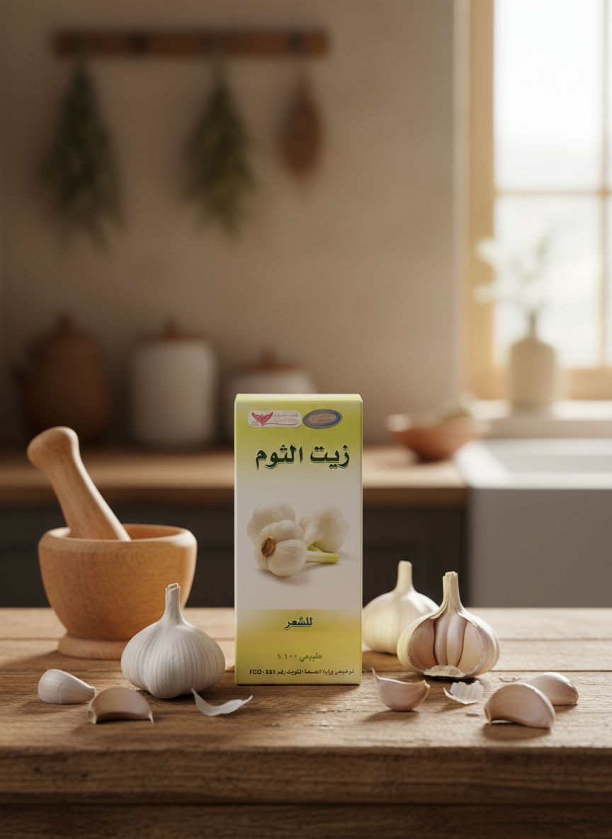 100% Pure Garlic Oil (زيت الثوم للشعر). The remedy your grandmother was right about. Kuwait Ministry of Health Licensed FCO-501. طبيعي 100%
