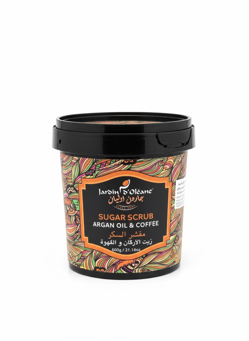 Energize your body with Jardin d'Oleane Sugar Scrub combining Moroccan argan oil & coffee. This invigorating scrub uses natural sugar crystals and coffee grounds to buff away dullness while argan oil nourishes—leaving your skin smooth, firm, and glowing with vitality!