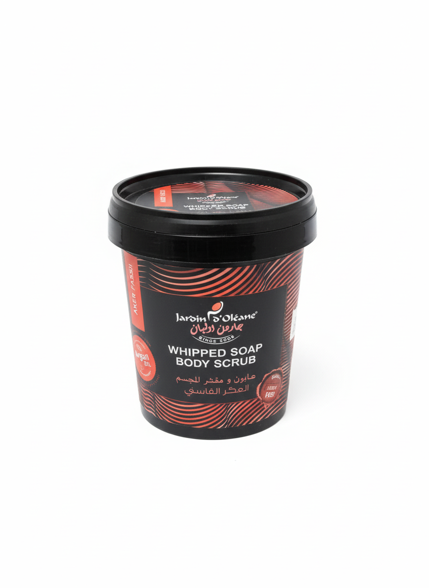 Experience the legendary beauty ritual with Jardin d'Oleane Whipped Soap Body Scrub featuring Aker Fassi. This fluffy, cloud-like formula combines the 3-in-1 power of exfoliation, cleansing, and moisturizing with the traditional Moroccan ingredient that gives you that coveted natural rosy glow!