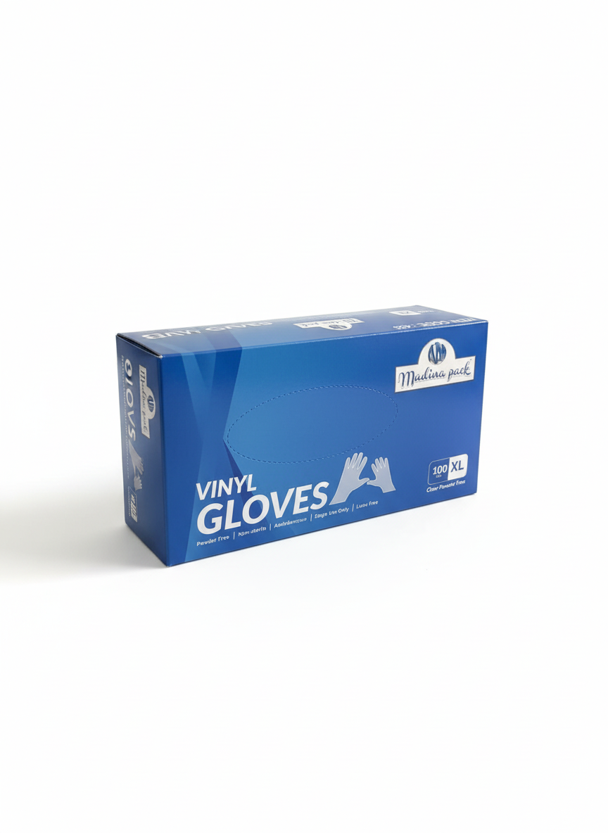 Powder Free Vinyl Gloves - 100 Pieces Per Box Madina Pack Vinyl Gloves provide reliable hand protection for various tasks.... Read more