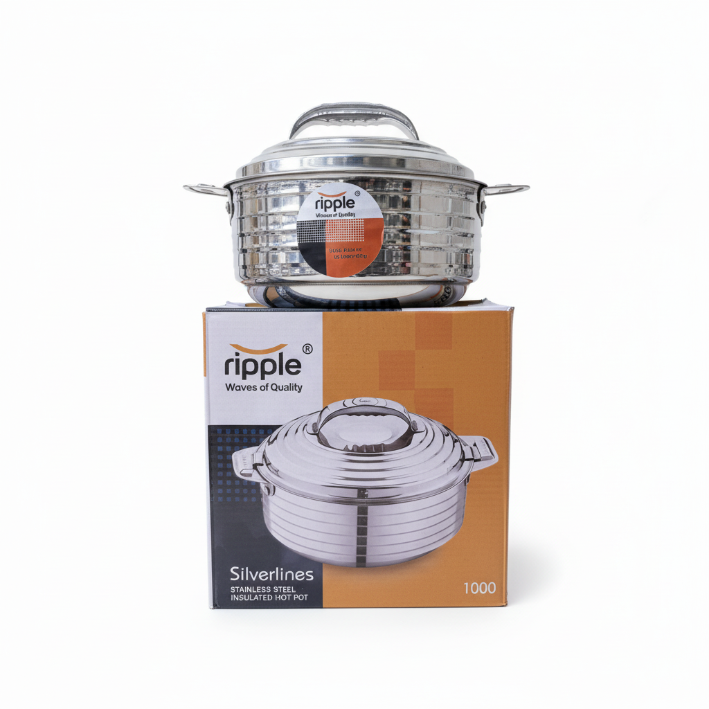 🌊 Ripple Silverlines - Waves of Quality Premium double wall stainless steel insulated hot pot with elegant horizontal ribbed design... Read more
