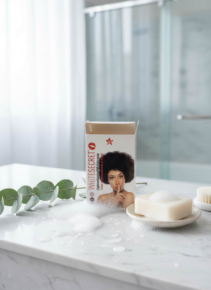 White Secret Lightening Body & Face Soap is the dual-purpose bar that cleanses while it lightens. Safe for both face and body, this savon éclaircissant (lightening soap) delivers gentle yet effective lightening with every wash.